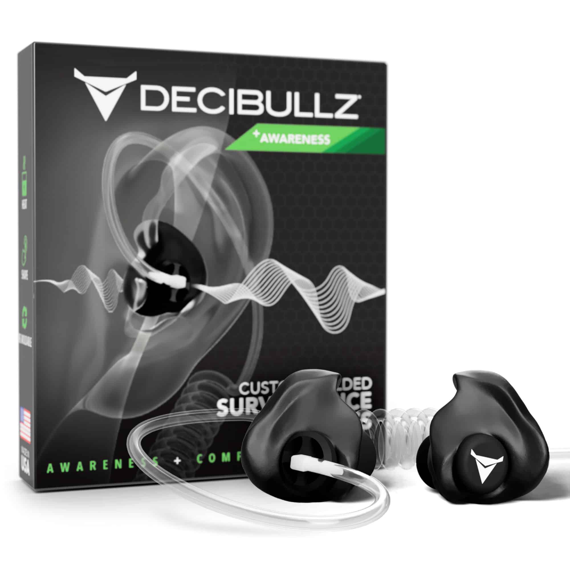 Decibullzin yksilöllisesti muokattavat radiokuulokkeet +AWARENESS mahdollistavat täyden tilannetietoisuuden, samalla kun tarkkailet radiota tilanteissa, joissa sinun on tärkeää kuulla selkeästi myös ympäristön äänet.