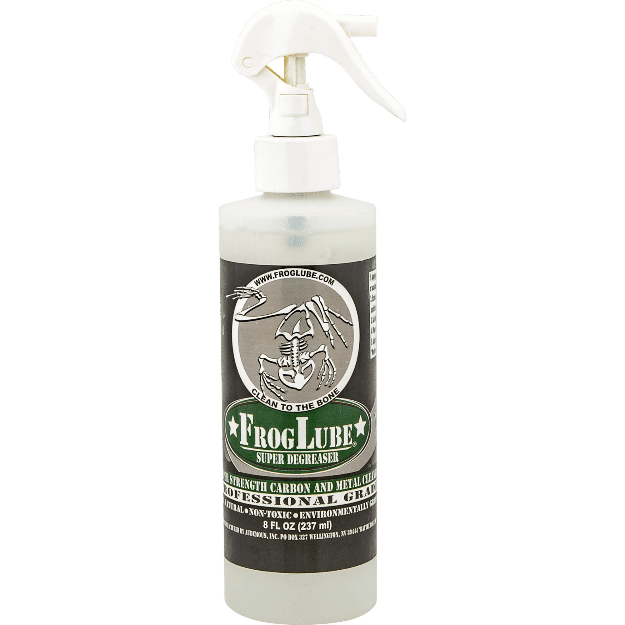 FrogLube Super Degreaser puhdistusaine soveltuu vaativan lian ja ruutijäämien entistä tehokkaampaan puhdistukseen. Puhdistaa pinnat tehokkaasti ennen voiteluaineen levittämistä. Tuotetta voi halutessaan laimentaa vedellä (max. suhde 50/50) ja se soveltuu käytettäväksi myös ultraäänipesureissa. -